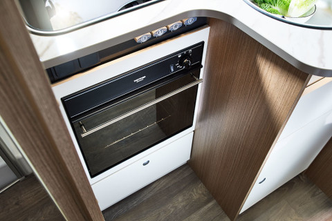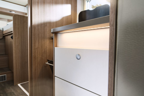Ausstattung: Panoramadachhaube über Sitzgruppe, Klarglasdachhaube 40x40 cm, Fliegengittertür, Kabelvorbereitung für Rückfahrkamera, Komfort-Eingangstür mit Fenster und Verdunkelung, Bridge Light
